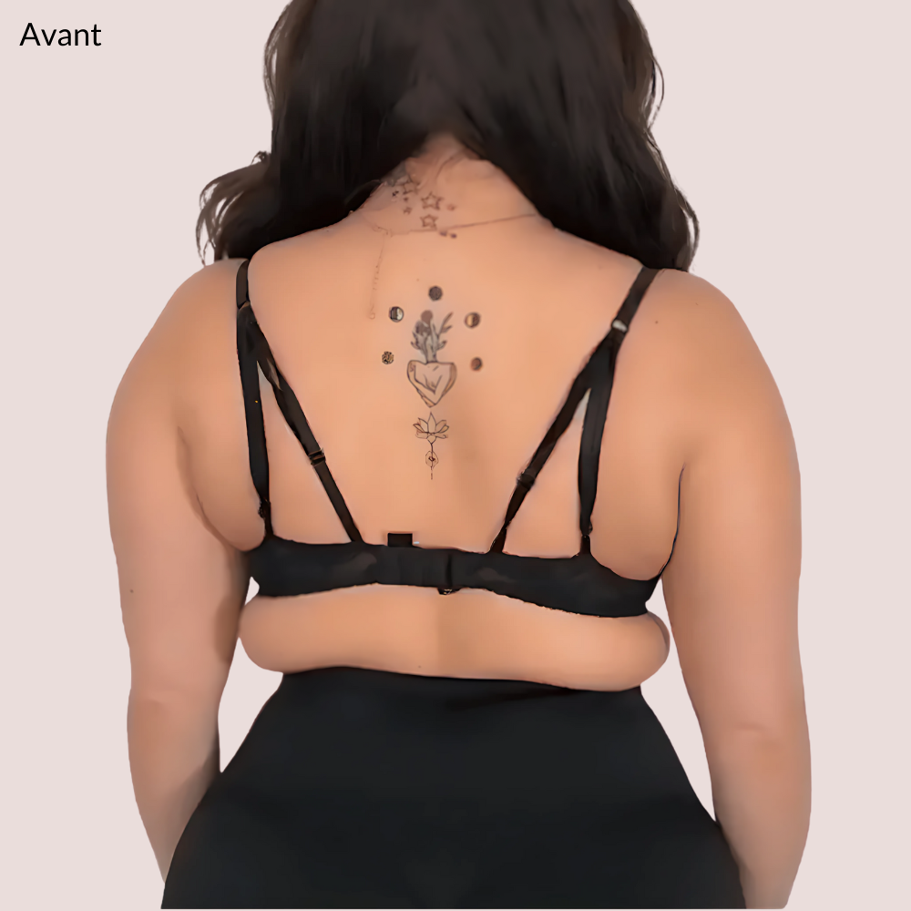 "Je travaille en open-space 9h/jour. Mes anciens soutiens-gorge créaient des bourrelets visibles et maintenaient mal ma poitrine tombante. Résultat : cardigans obligatoires pour cacher ! Maintenant ? Chemisiers, pulls ajustés, tout passe ! Dos parfaitement lisse, maintien présent sans serrer. Même après 12h, aucune marque ! Parfait pour nous les femmes actives."